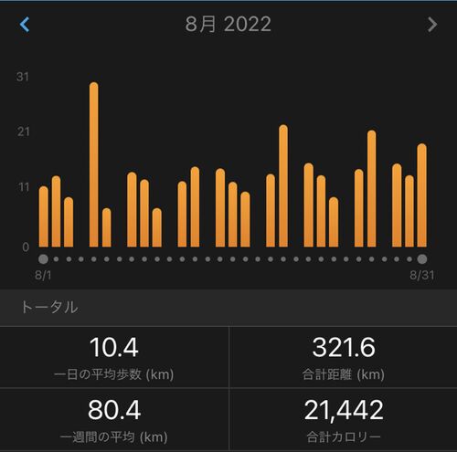 今日はランオフなので、筋トレと体幹とhiit。 今日から9月。先月の月間走行距離は、321.6キロ。 先月より40キロ近く多く走りました。またまた最高記録です。ロング走を多めにしたのと、ポイント練のアップダウンジョグが増えたので、距離が増えています。 今…