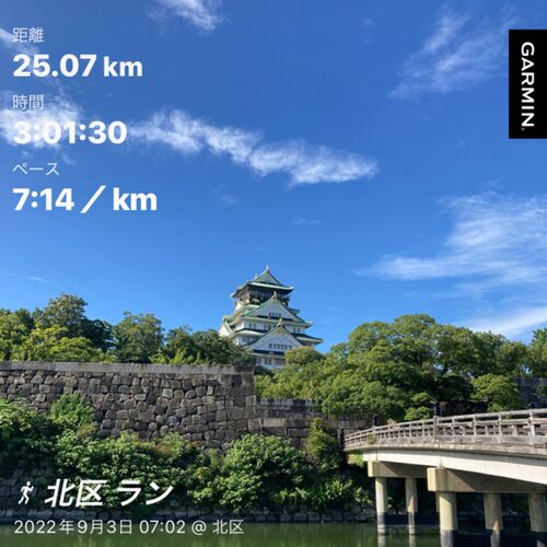 ずっとやりたかった3時間のLSD。週末は天気が良くないとの事で、水曜日に前倒ししてやっていたのですが、今日は天気も良く涼しい、これはやるしかないと思い、3週連続で大阪城へ。 スタートが遅かったためか、ランナーの方がたくさん。何グループも集団走を…