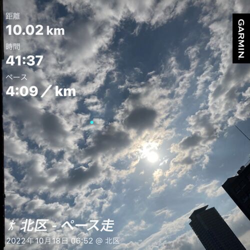 キロ4:10に慣れるため2回目のMペース走。念入りにアップと流しをしてから1キロのアップジョグ。昨日は走っていないので、腿裏の張りもマシになっているし、体の動きも悪くない。 ただ、少し風が気になる。神戸マラソンは海沿いを走るので風に強くならないと…