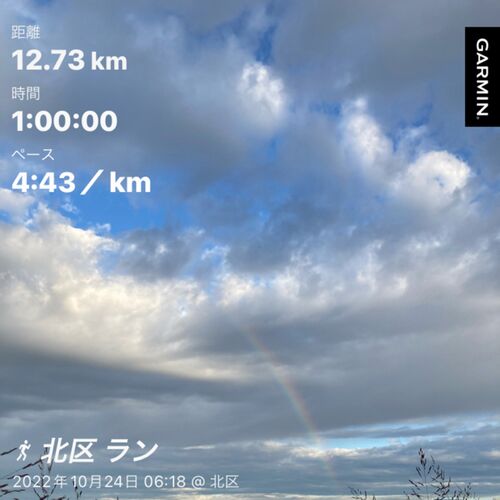 虹をよく見るけど、朝に見たのは久しぶり。今日はいい事がありそう。 自分と同じようにサブ3を目標にしている人が達成すると、我が事のように嬉しい。モチベーションが上がるし、自分も絶対にやるんだという気持ちが湧き出てくる。 初フルマラソン、楽しみや…