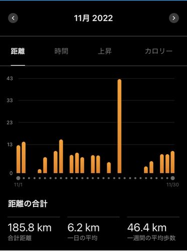 今日はランオフなので、筋トレと体幹とhiit。 いつのまにか12月。はや過ぎる。毎年1〜3月がむちゃはやくて、4〜8月は比較的にゆっくり、9月以降は超はやく過ぎ去っていっています。悔いのないよう生きよう。 新しい月なので、恒例のやつ。先月の月間走行距離…