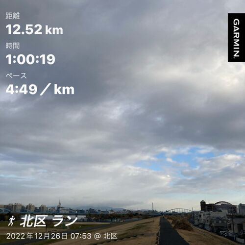 起きるのが遅く走るのをやめようかと思ったけど、鞭打って1時間ジョグ。疲れがたまっているけど、走り出すと意外に走れる。 しっかりキロ5で50分の後、Mペースで10分。なかなか良い練習です。 今日を乗り切れば明日は休み。がんばろ。 シューズはペガサス36。