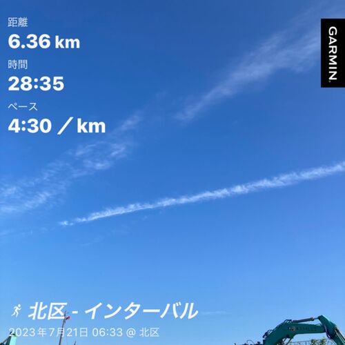 梅雨明けと北風の影響か、久しぶりにクーラーなしで寝ることができたのでスッキリ目が覚めました。 今日はインターバル、25度でいつもより涼しいけど夏仕様の設定でキロ3分45秒でレストは2分。 先週と同様、遅くてもいいと思いながら1本目。3分43秒。 かなり…