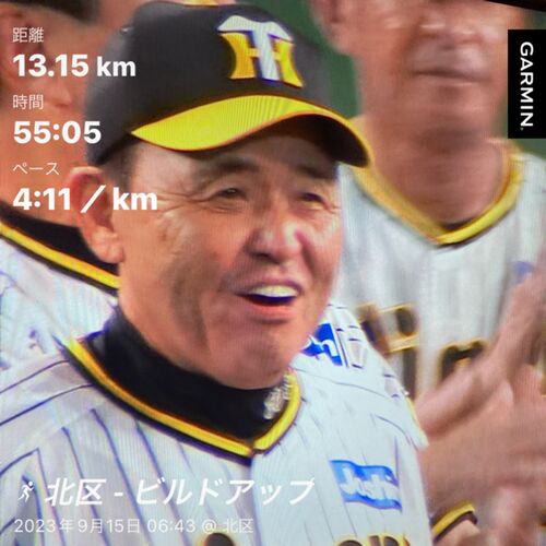 阪神が18年ぶりにリーグ優勝。岡田監督の笑顔が最高でした。本当にうれしそう。 優勝記念に、今の走力がどんなものなのか知るため、今日はビルドアップ走。 キロ4分15秒スタートで、5キロ毎に15秒位あげて最終的に3分45秒まであげる、俗に言う、岩本式ビルド…