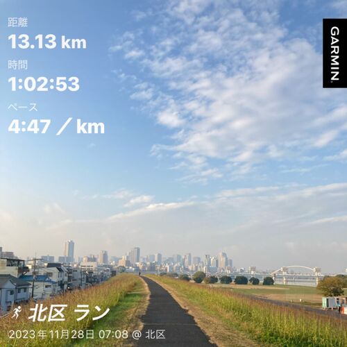 昨日はもう短パンロンTスタイルは寒いなーと思っていたけど、今朝は暖かい。 といってももうすぐ12月、冬バージョンの走りやすい服が欲しい。 今日は以前たまにやっていた、キロ5で10キロ、速いペースで10分間というジョグプラスアルファの練習。 結局、速い…