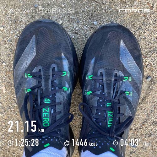 ハーフを走らないといけないと思いつつも一人は気が滅入る。 こんな事ならレースを入れれば良かったな。 それはさておき、大阪マラソンで履く予定のアディオスプロ3の試し履きをしたかったので今日はペース走。 スーパーシューズなので設定はキロ4で最低12キ…