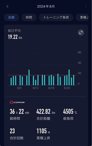 むちゃ暑かった8月も今日で終わり。 なんやかんや楽しい事が色々あったので良い月でした。 今月の月間走行距離は422.82キロ。 先月末にあった右足首の違和感は全く無くなり順調に走れています。 まだまだ暑いけど来月からは徐々に強度を上げてポイント練をし…