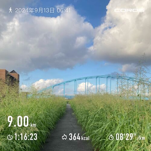 昨日のえげつない豪雨後、湿度がむちゃ高くなり今朝の気温も27度と蒸し暑い13日の金曜日。 今日もウォーキング。 3日目。 ハッキリ言って足の状態はかなり良い感じで、少しの腓骨筋の張りだけになりました。 キロ9分を切りたいと意気込み、スキップドリルな…