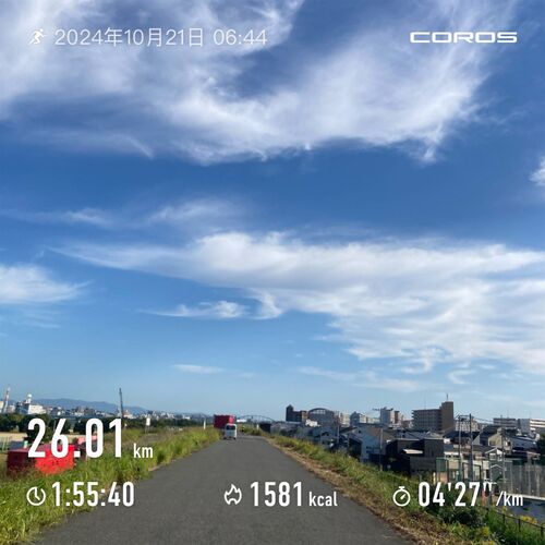 今週も中強度走から。 いつも通り設定はキロ4分30秒で、目標は22キロ以上。 ラップは、 西向き以外は向かい風で結構しんどかったけど粘って26キロまで。 ラスト2キロは追い風だったので良いペースで気持ちよく終われました。 同じ感じで走って20秒くらいも違…