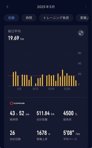 今日から6月。 ついこの前までゴールデンウィークやったのにな、ほんまにビビる。 4月に続き500キロオーバーで511.84キロ。 週5から週6になるだけで全然違う。 あとは質の高い練習が積めたら言う事なしやけねんけどな。 速くなってる感じもしないし、現状維…