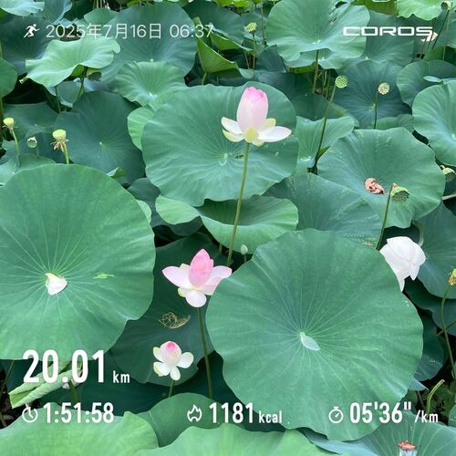 夜中の雨で気温が下がり、今朝も涼しい。天気予報では7時8時台は雨マークになっているけど、ほんまに降るんかいなと思いながらジョグへ。 しばらくすると空が暗くなってきて、しっかり降ってきました。この時期のシャワーランは気持ち良いけど、靴が濡れるの…